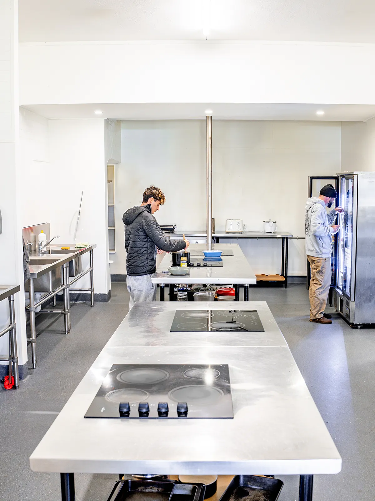 Cook, connect, and save on eating out in our massive chef’s kitchen, fully equipped for group meals or solo creations.